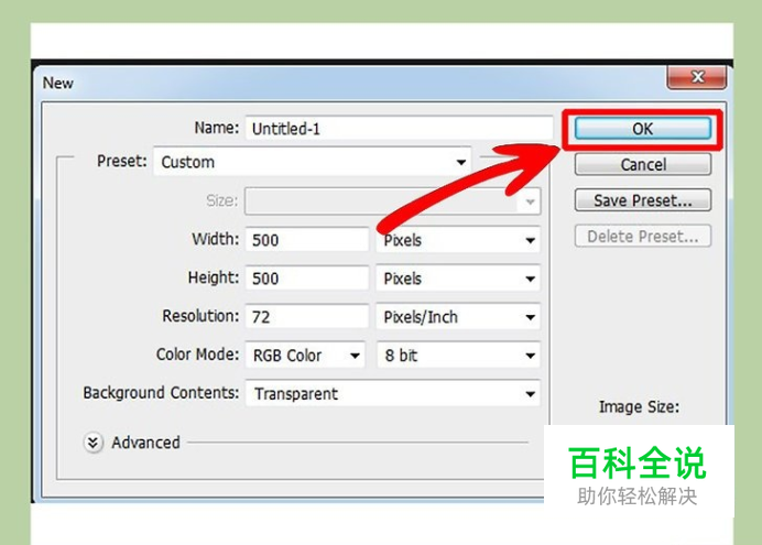 设置宽度和高度尺寸,这里您看到500x500像素,但您可选择任何想要的尺寸。