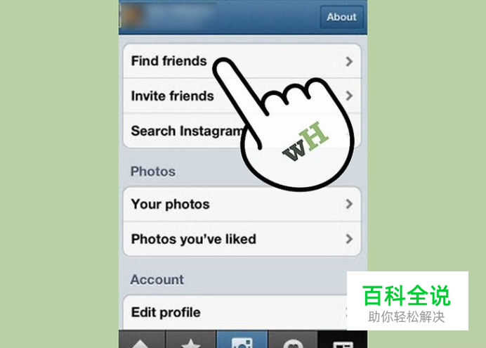 点击最上面的“查找和邀请好友”。选择设置菜单中最上方的选项。该选项的名称可能根据你使用的Instagram版本不同而略有差异,但是一般都选择最上方的选项。