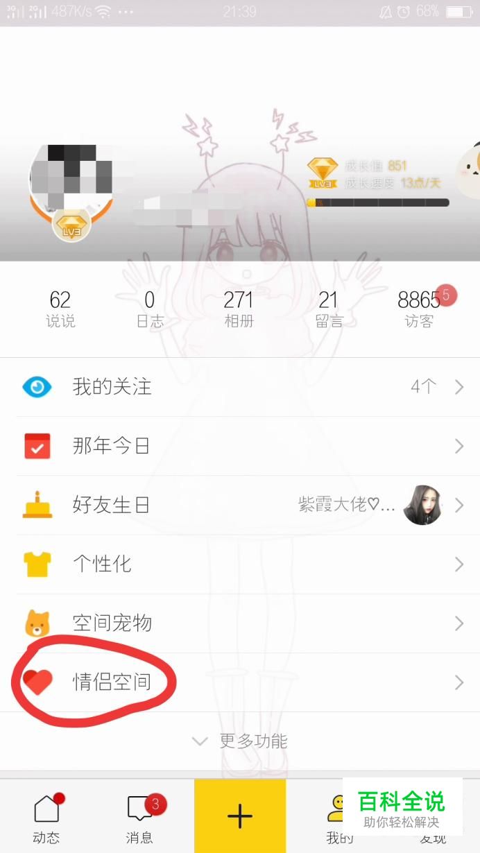 找到我的页面中的“情侣空间”,点击进入这个选项。