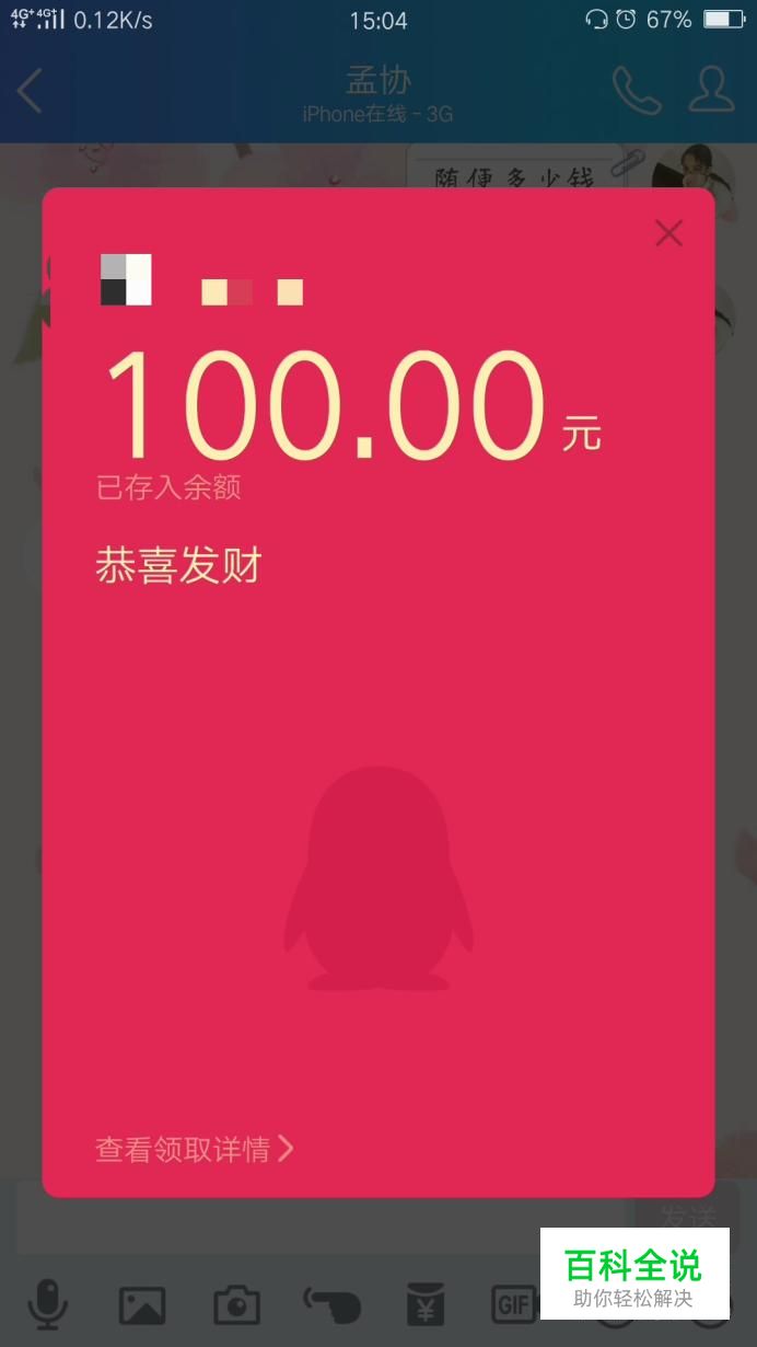 点击好友发过来的红包,接着就会弹出来抢到的红包额度。