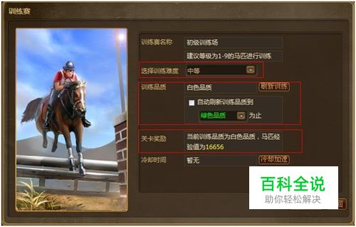 需要注意的是,每日训练有挑战次数限制,每天成功挑战10次后不可再挑战,如果想要升级快人一步,建议玩家选择高难度高品质的关卡,这样才可获得最高的马匹经验值。