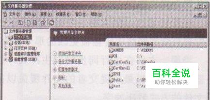 选择不同的结点,在win7管理主窗口的左边会列出对应使用的工具链接供选择使用,以便于配置文件服务器,如图2所示。 图2 工具链接