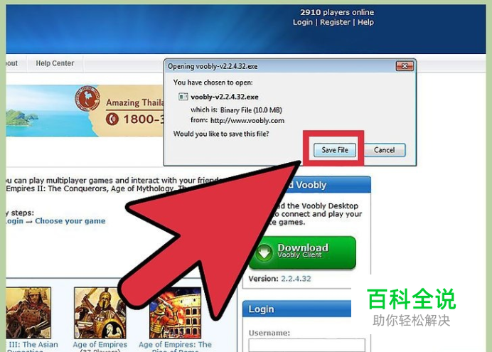 下载Voobly客户端。在页面左侧,有一个按钮,上面写着“下载客户端”。使用客户端就可以实现联网游戏了。如果弹出一个对话框,提示你运行文件,点击“运行”即可。