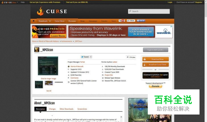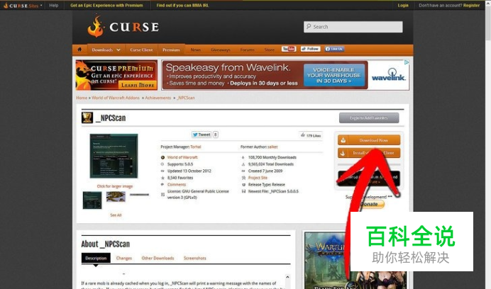 前往http://www.curse.com/addons/wow/npcscan,找到并下载NPCscan。