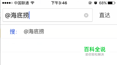 打开手机百度或手机浏览器百度搜索框,输入“@+商家账号”,以【@海底捞】直达号为例: