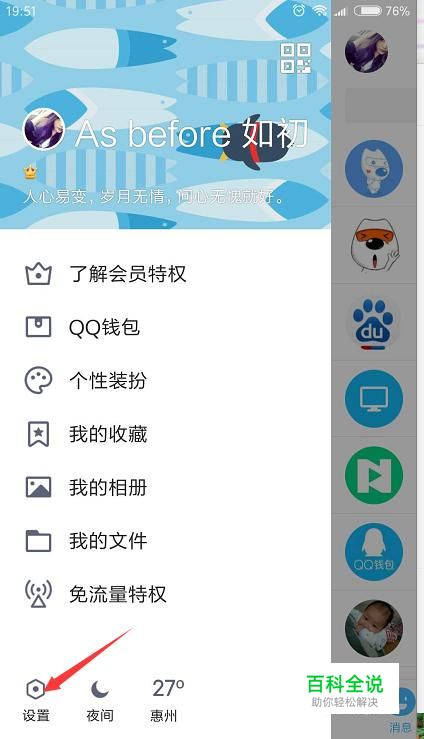 首先我们登录qq,点击一下左上角的头像然后选择设置。