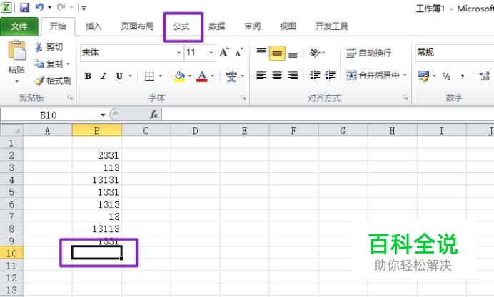 然后我们选中1331下面的单元格,然后点击公式;