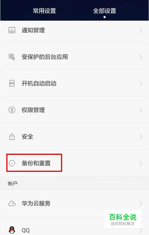 在【设置】菜单列表的下方找到【备份和重置】选项并点击进入。