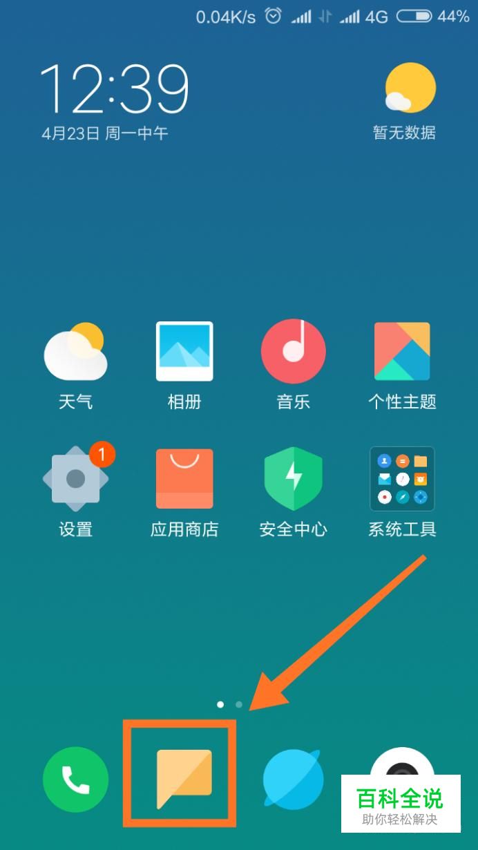 首先我们先在手机桌面上找到短信,点击进入,进入短信界面后,长按手机的菜单键。