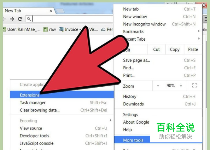 查看已安装的扩展程序和插件。从下拉菜单中选择“工具”,然后点击“扩展程序”查看浏览器上安装的不同工具和扩展程序。