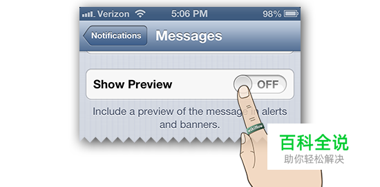 关闭预览。在该消息的控制面板中,向下滚动,直到你看到“展前预览”,然后轻按切换开关,使其变为“关”。