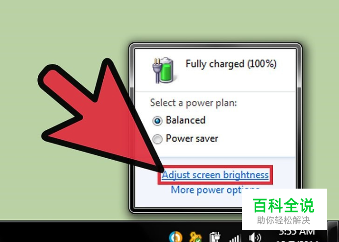 点击系统托盘里的“电源选项”按钮。它的图标看起来像是一块电池。只有在笔记本电脑上,才能看到这个图标。 如果你使用的笔记本电脑上没有显示“电源选项”按钮,请从“开始”菜单中打开“控制面板”,然后选择“电源选项”。 考虑到亮度调节是一种节省笔记本电量的选项,因此台式电脑没有亮度调节滑块。点击此处了解调节台式电脑屏幕亮度的具体细节。