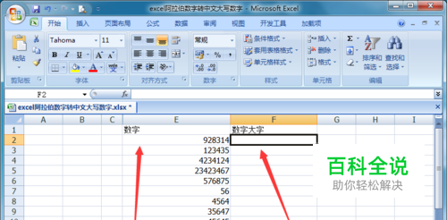 首先要打开做一个excel表格,里面有阿拉伯数字,而我们所需要转化的大写中文所在的地方。