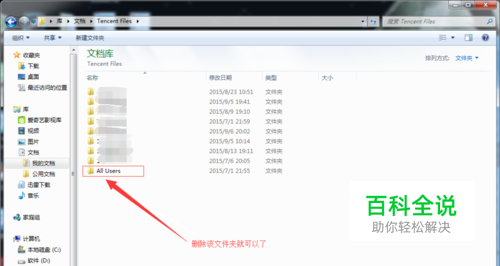然后在打开我的文档下面,找到Tencent Files--》All Users 整个文件夹删掉就可以了。不用担心会影响什么,再次登录会自动生成。