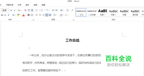 首先打开需要设置的文档,今天我们以一篇工作总结为例,需要在这篇文档中插入一个横向的表格。