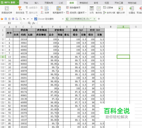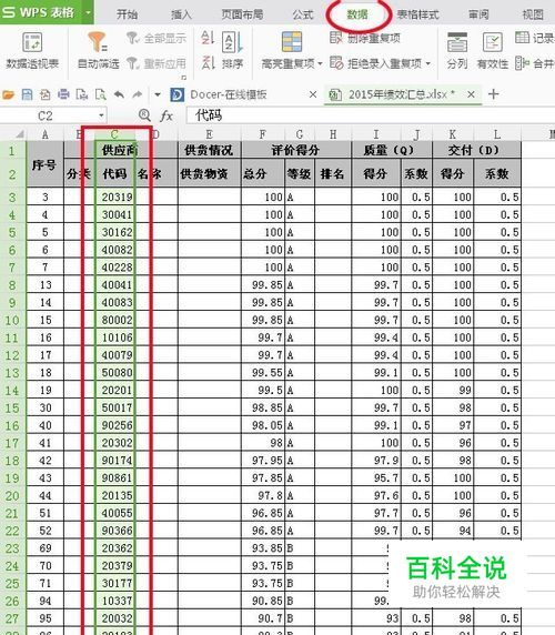 2.选中要排列数据的一列,然后选择菜单栏里的“数据”。如图