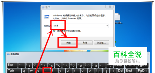 点击"开始菜单"——“运行”,或直接按下“win+R”组合键打开“运行”对话框,再在“运行”对话框在输入 :cmd,回车打开cmd命令行窗口。
