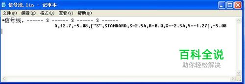 新建一个“信号线.lin“文件 打开记事本,编辑该文件。输入如下内容:(拷贝粘贴即可) *信号线, ----S ---- S ----S ---- A,12.7,-5.08,["S",STANDARD,S=2.54,R=0.0,X=-2.54,Y=-1.27],-5.08 然后保存文档。 将记事本文档后缀“txt”改成“lin”,即生成“信号线.lin“文件;