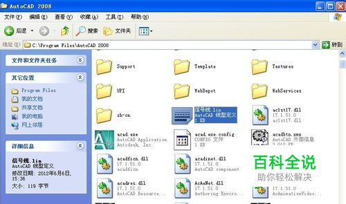 将“信号线.lin“文件复制到“AUTOcad2008软件”的安装目录下;