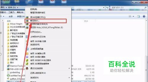 下载好软件以后,在软件上单击鼠标右键,选择解压到。可以选择文件解压位置。