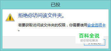 重装系统后有些文件件或文件夹会出现“你当前无权访问该文件夹”“拒绝你访问该文件夹”的提示。