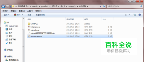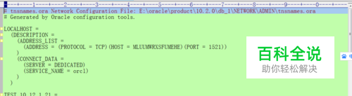 在Oracle的安装文件下查找tnsnames.ora文件,一般路径如: ORACLE_HOME%\network\admin下: 如果真的找不到路径,建议大家在Oracle安装位置全文搜索tnsnames.ora