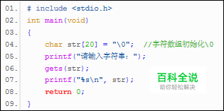我们经常使用 scanf 和 %s来达成从键盘输入字符串的结果 但其实使用 gets() 函数从键盘输入字符串的方法比使用 scanf 和 %s更简单。 gets() 函数只有一个参数,该参数类型是 char* ,也就是说 str 既可以是一个字符指针变量名,也可以是一个字符数组名。