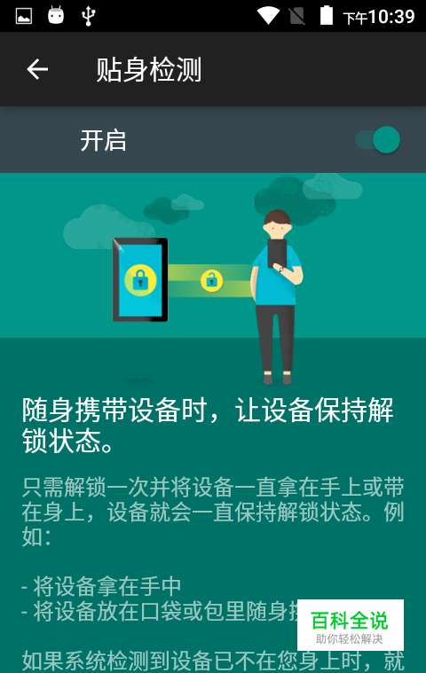 例如,进入贴身检查,你打开后,当你智能手机离开你一定范围后,将自动上锁。如下图所示。