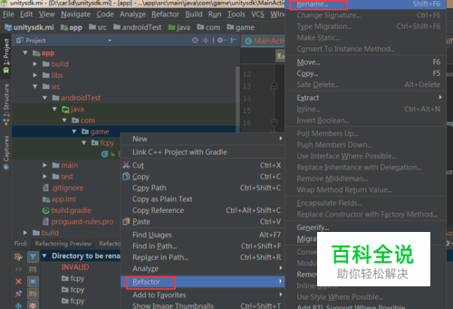 右键点击需要修改的中间包名打开菜单,依次选择“Refactor”>“Rename...”