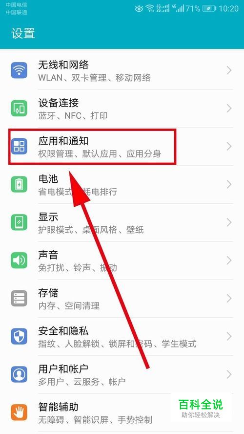 在打开的列表中找到“应用和通知”选项,点击打开它