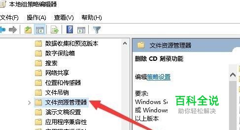 在右侧的窗口中我们找到“删除CD刻录功能”设置项。