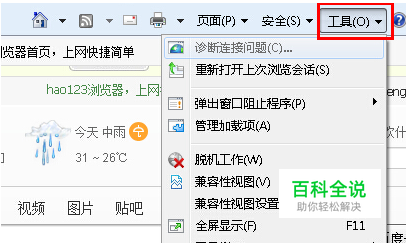 首先关闭当前打开的所有的IE页面,然后打开Internet Explorer,在打开的窗口中点击右上角的“工具--Internet 选项”;