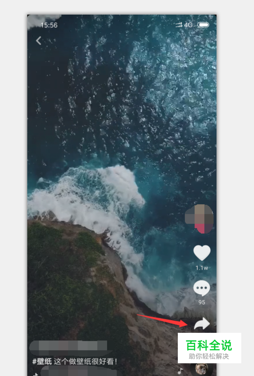 打开软件,当我们看到好看的视频并且想把它设为自己手机桌面时, 我们可以点击此视频的分享按钮。 如图。