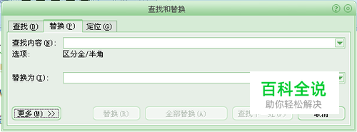 点击“开始”菜单最右侧的“替换”,出现“查找与替换”对话框