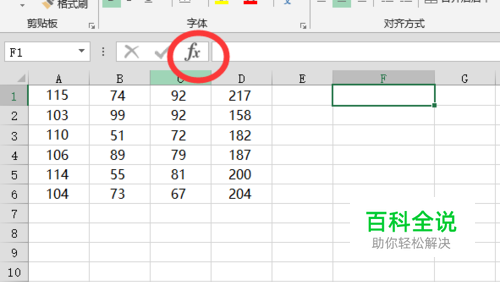 如图所示,我们求出单元格数据的平均数,我们单击编辑栏中F(X)图标,便会弹出函数对话框。