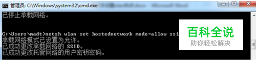在“命令提示符”里输入“netsh wlan set hostednetwork mode=allow ssid=mytes key=12345678”,回车,系统会自动虚拟出一个wifi热点,如下图所示: