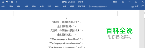 首先我们打开word并且找到一段示例文字(这里的示例文字是摘抄的泰戈尔飞鸟集并附带英文翻译。)