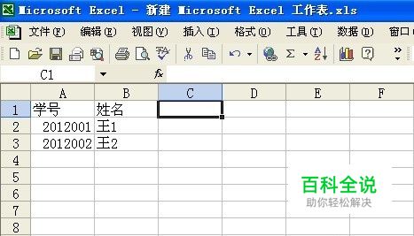 在A列输入学号,B列输入姓名,任意输入两组姓名和学号并以此为例进行讲解。