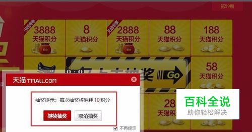在小积分抽大奖页面中,我们可以花费10积分进行一次抽奖,没准运气好就可以抽到更多的积分,这个是天猫积分第一个使用的地方。