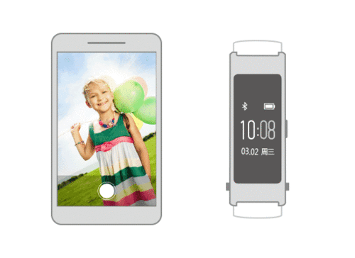 遥控拍照 仅支持EMUI 4.1以上的手机。 如果想要来张全家福或者旅行忘带自拍杆,又不想照片全是大头贴,您可以使用手环遥控拍照。 开启手机拍照功能,长按手环侧按键2s即可遥控拍照。