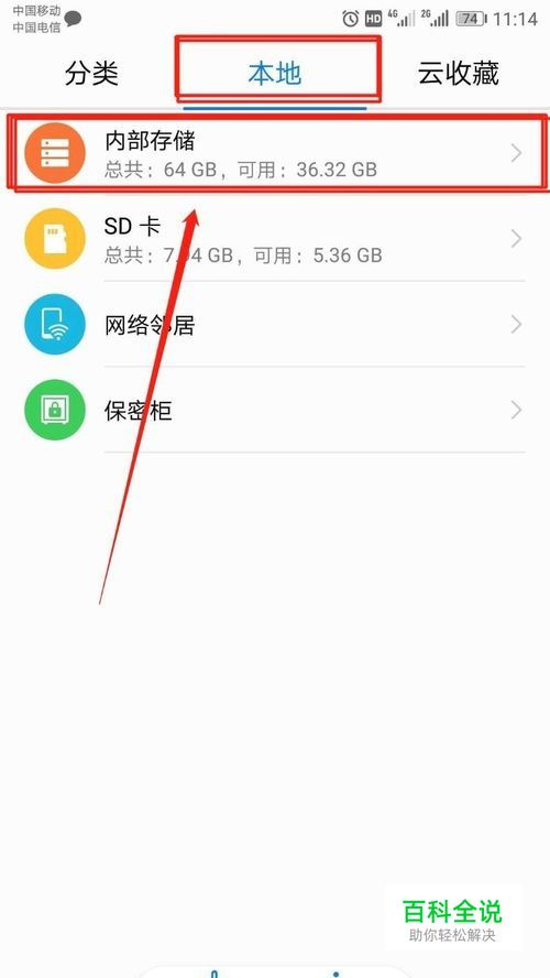 选择顶部的”本地“,点击”内部存储“进入: