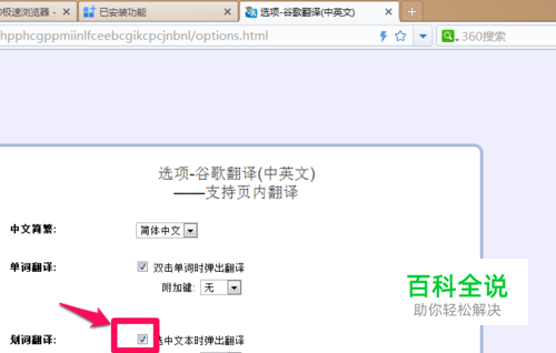 最好把选中文本时弹出翻译也选上,也很实用啊,点击保存。