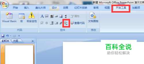 打开PPT,“开发工具”-“其他控件”