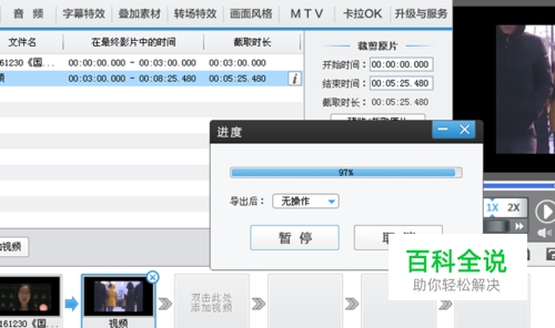 这个时候调出进度对话框,等待进度为100%时就完成了视频合成。
