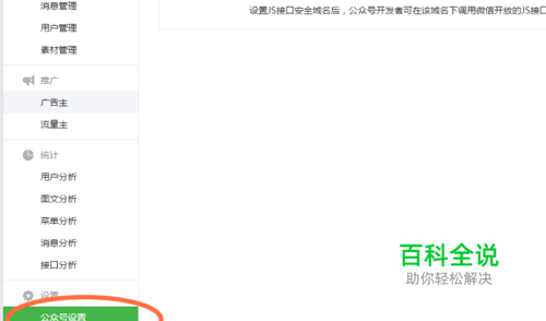 下滑鼠标,在页面左下角找到设置-公众号设置