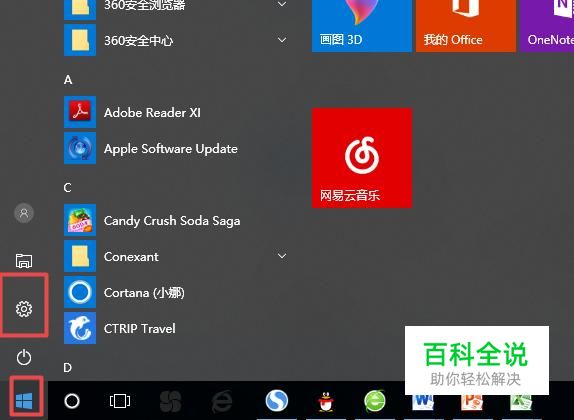 这个时候我们是可以在设置中进行调整的,我们点击电脑左下角的微软按钮,弹出的界面,我们点击设置;