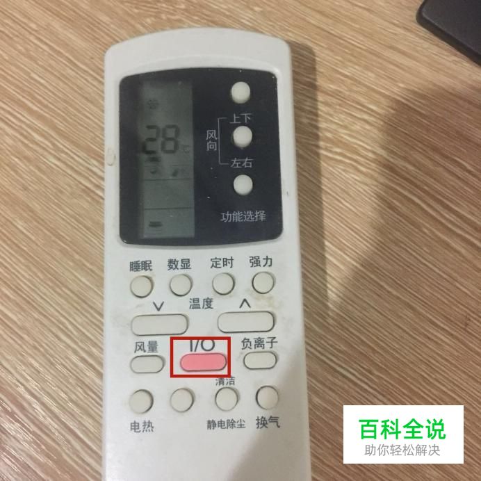 首先点击空调遥控器中间的红色按钮,可以把我们的空调打开,如下图所示。