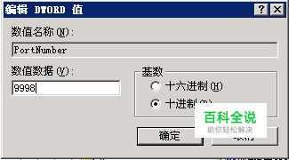 把右边 PortNumber 的值修改为9998(此值随便多少),注意是十进制的