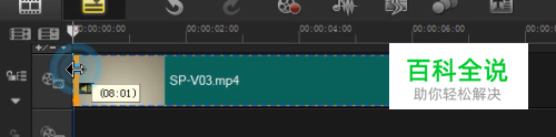 用同样的方法,将鼠标移动至修剪栏的结束修整拖柄上,单击鼠标左键并向左拖动,至合适的位置释放鼠标左键,即可标记结束点。