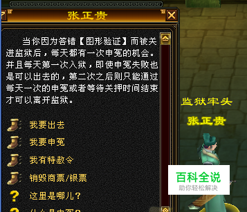 因答错防外挂答题进入监狱:监狱场景中不得使用任何物品,不能使用任何飞行符和传送技能。 每天第一次因答错防外挂答题进入监狱可以直接出狱;